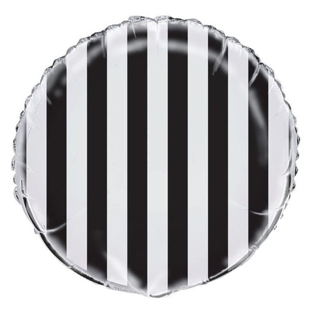 Black & white striped 45cm round foil balloon. Perfect for monochrome parties & New Year's Eve celebrations.