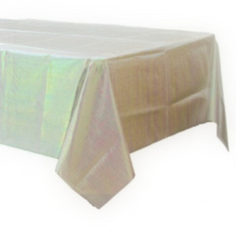 The perfect iridescent table cover for your party. This simple light weight plastic table cover in transparent iridescent colour is ideal for birthday parties, garden parties or picnics.