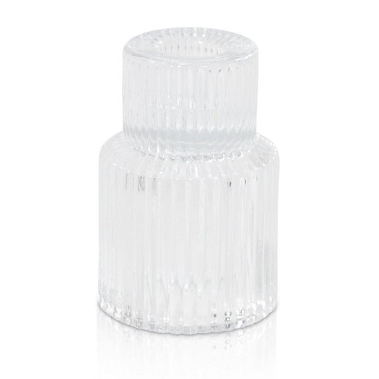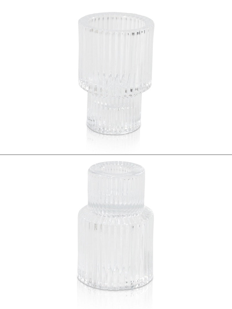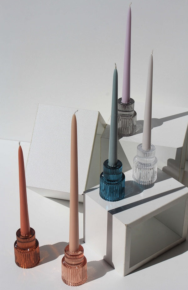 The Arlo vintage glass candle holder has a gorgeous, retro silhouette and stylish pleated glass finish. Cleverly designed to suit multiple candle types. Simply flip this duo candle holder over to hold tealight candles or use narrow side up for both dinner and taper candles. Perfect for a stylish tablescape. Other shades available.