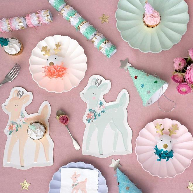 Ho, ho, ho...make your festive meals even more special with these sweet pastel reindeer shaped plates from Meri Meri! They are crafted with stunning pastel shades and silver detail. Matching napkins available.